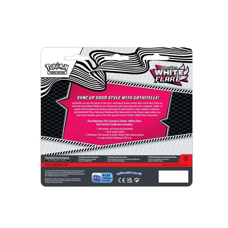 White Flare Gothitelle Tech Sticker Collection with 3 packs of White Flare and a full art promo Gothitelle.
